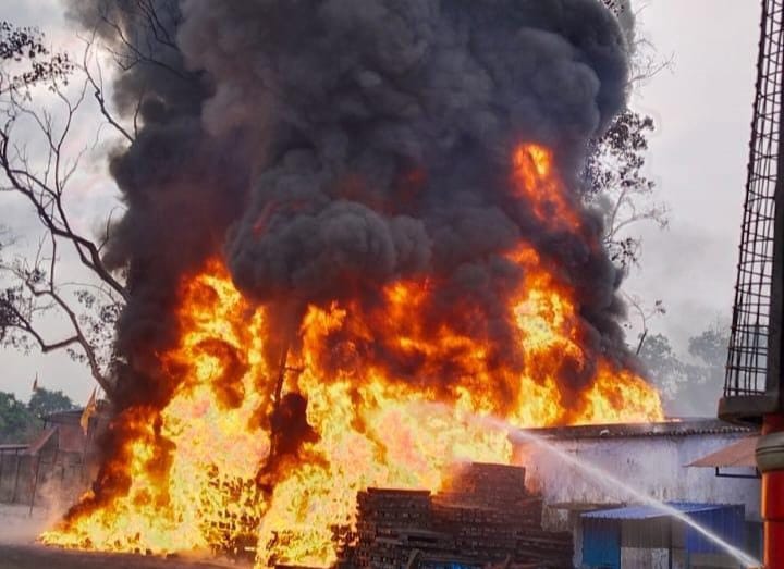 JAMSHEDPUR : जमशेदपुर के वर्मा माइंस एरिया के एक लकड़ी गोदाम में शनिवार को आग लग गई। देखते ही देखते आग ने विकराल रूप धारण कर पुरे गोदाम को अपने चपेट में ले लिया,जबतक फायर ब्रिगेड की गाड़ी पहुंचती और आग बुझाती तबतक सब कुछ जलकर खाक हो गया। आग लगने के कारणों की अभी तक सही जानकारी नहीं मिल सकी है। गोदाम के नजदीक मौजूद रबर में लगी आग बताई जा रही है। जो विकराल रूप धारण कर पुरे लकड़ी गोदाम को अपनी चपेट में ले लिया। आग की भयावता इसी से लगाया जा सकता है की धुआं का गुब्बार दूर-दूर तक नजर आ रहा था। फायर ब्रिगेड की लगभग 15 गाड़ी आग बुझाने में जुटी रही तब कही जाकर आग पर काबू पाया जा सजा। वहीं इस घटना में लगभग एक से डेढ़ करोड़ रुपए का नुकसान होने का अनुमान है।