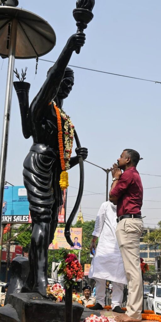 DHANBAD : भगवान बिरसा मुंडा की 124वीं पुण्यतिथि के अवसर पर बैंक मोड़ स्थित भगवान बिरसा मुंडा की आदमकद प्रतिमा पर उपायुक्त माधवी मिश्रा, वरीय पुलिस अधीक्षक हृदीप पी जनार्दनन, सिटी एसपी अजीत कुमार, अपर समाहर्ता विनोद कुमार, निदेशक डीआरडीए राजीव रंजन, जिला पंचायती राज पदाधिकारी मुकेश कुमार बाउरी सहित अन्य पदाधिकारियों ने भगवान बिरसा मुंडा के चरणों में श्रद्धा सुमन अर्पित किए।