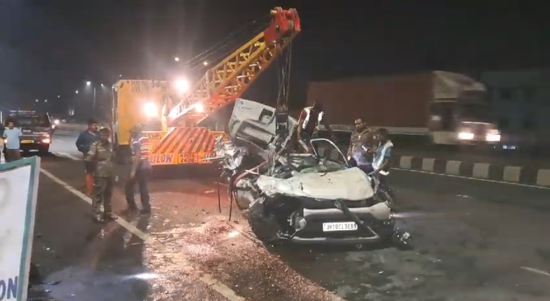 DHANBAD : धनबाद में देर रात करीब 12 बजे बड़ा सड़क हादसा हुआ है जिसमे 4 लोगो की मौत हो गई और एक गंभीर रूप से घायल है। बरवाअड्डा थाना क्षेत्र के लोहार बरवा जीटी रोड के समीप तेज रफ्तार हाइवा वाहन ने एसयूवी कार संख्या JH10CL-3689 को जोरदार टक्कर मार दी। कार में कुल पांच लोग लोग सवार थे जिसमे चार की मौत हो है जबकि एक गंभीर रूप से घायल का धनबाद एसएनएमएमसीएच में इलाज चल रहा है। बताया जाता है की सभी लोग धनबाद के ही रहने वाले है। चूड़ी होलसेल व्यवसाई राहुल गुप्ता अपने चार कर्मी के साथ धनबाद रांगाटांड़ स्थित दुकान से किसी काम से बरवाअड्डा जा रहे थे तभी ये हादसा हुआ।