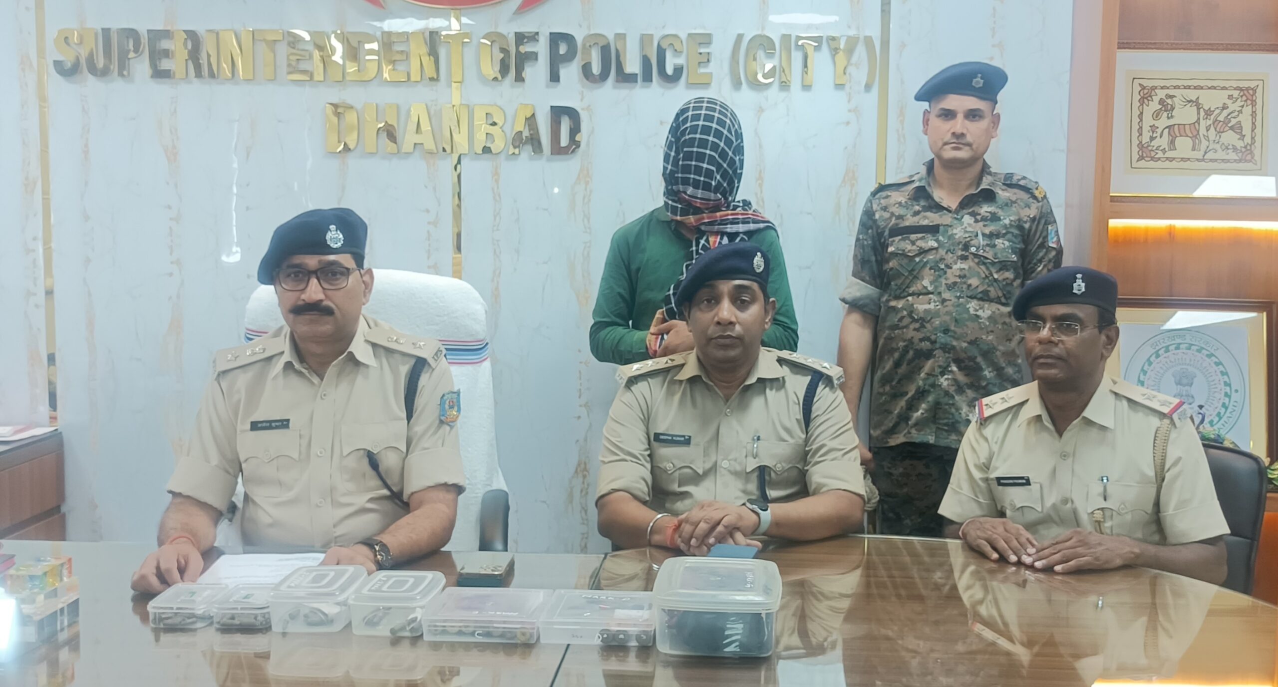 DHANBAD : सरायढेला थाना क्षेत्र अंतर्गत स्टील गेट अनन्या अपार्टमेंट फ्लैट नंबर 402 में रिकवरी एजेंट राहुल कुमार सिंह के घर से पुलिस ने कुल 80 जिन्दा कारतूस बरामद की, जिसके बाद पुलिस ने राहुल कुमार को गिरफ्तार कर लिया है। धनबाद सिटी एसपी अजीत कुमार ने अपने कार्यालय कक्ष में प्रेस कांफ्रेंस जानकारी दी है।