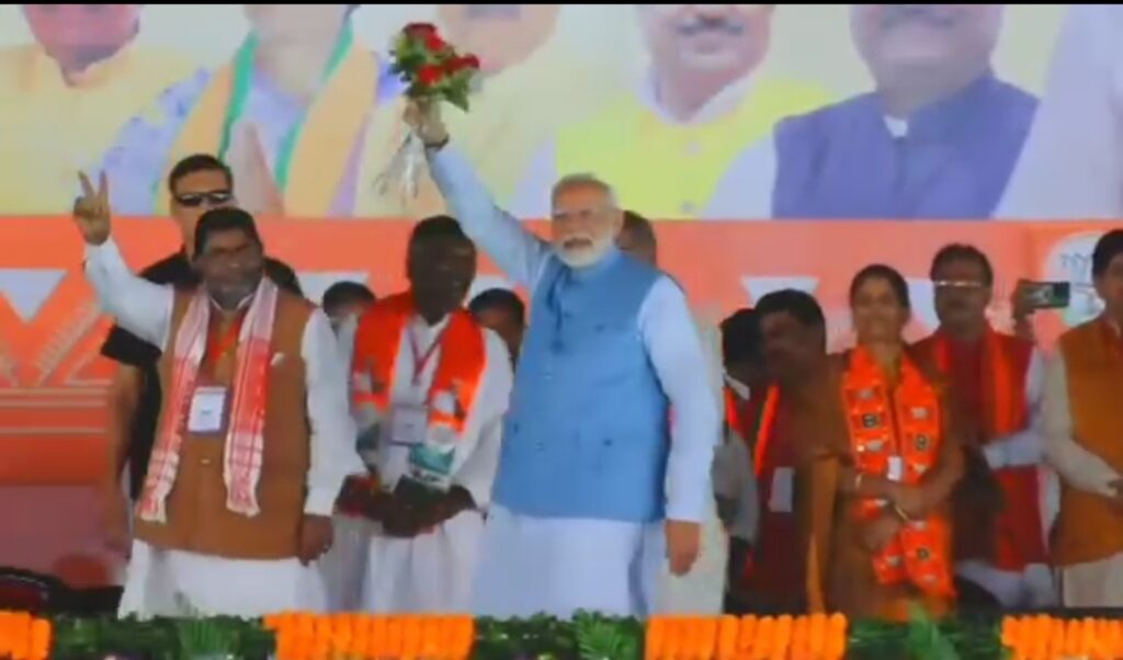 BOKARO : प्रधानमंत्री नरेंद्र मोदी आज चुनावी जनसभा को संबोधित करने बोकारो के चंदनकियारी पहुंचे थे जहां झारखंड के कई बड़े नेता के साथ बोकारो और धनबाद के एनडीए के प्रत्याशी थे। प्रधानमंत्री ने अपने संबोधन के कहा इस बार झारखंड में भाजपा की प्रचंड आंधी चल रही है। इस बार का नारा है रोटी, बेटी, माटी की पुकार झारखंड में भाजपा और एनडीए की सरकार। एनडीए का एक ही मंत्र है हमने झारखण्ड बनाया है हम ही संवारेंगे। ऐसे लोग कभी विकास नही करेंगे तो झारखंड निर्माण के विरोधी रहे है।