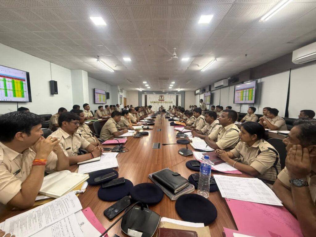 DHANBAD : धनबाद पुलिस मुख्यालय, समाहरणालय परिसर में एसएसपी प्रभात कुमार की अध्यक्षता में अक्टूबर 2025 माह से संबंधित मासिक अपराध समीक्षा बैठक का आयोजन किया गया। बैठक में एसएसपी के साथ सिटी एसपी ऋतविक श्रीवास्तव, जिले के सभी डीएसपी, एसडीपीओ, थाना प्रभारी, ओपी प्रभारी एवं विभिन्न शाखाओं के प्रभारी उपस्थित रहे।