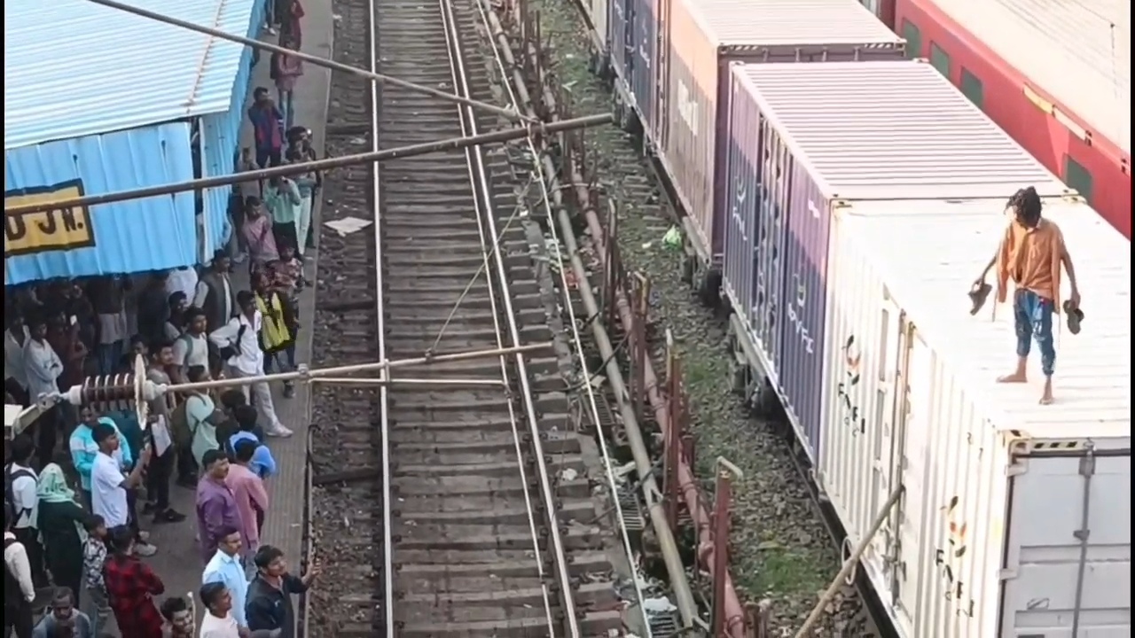 DHANBAD : धनबाद रेलवे स्टेशन के प्लेटफार्म नम्बर 2 पर उस वक्त अपफरा-तफरी का माहौल हो गया, जब एक युवक स्टेशन पर खड़ी ट्रेन पर चढ़कर हाई वोल्टेज तार को छुने की बात कह पागलों की तरह हरकत करने लगा। स्टेशन पर मौजुद सुरक्षा कर्मियों को इसकी जानकारी हुई तो अधिकारियों ने तुरंत मेन लाइन को बंद करवाया और कड़ी में मस्क़त के बाद उस युवक को नीचे उतारा गया। इस दौरान स्टेशन परिसर में काफी भीड़ जमा हो गई। लोगों की माने तो युवक नशे में था और कैसे ट्रेन ऊपर चढ़ गया। रेलवे पुलिस ने युवक को हिरासत में लिया है। साथ ही पुलिस उसके बारे में जानकारी इकट्ठा करने में जुटी है। ट्रेन के ऊपर चढ़कर हटिया जाने की बात कह रहा था।
