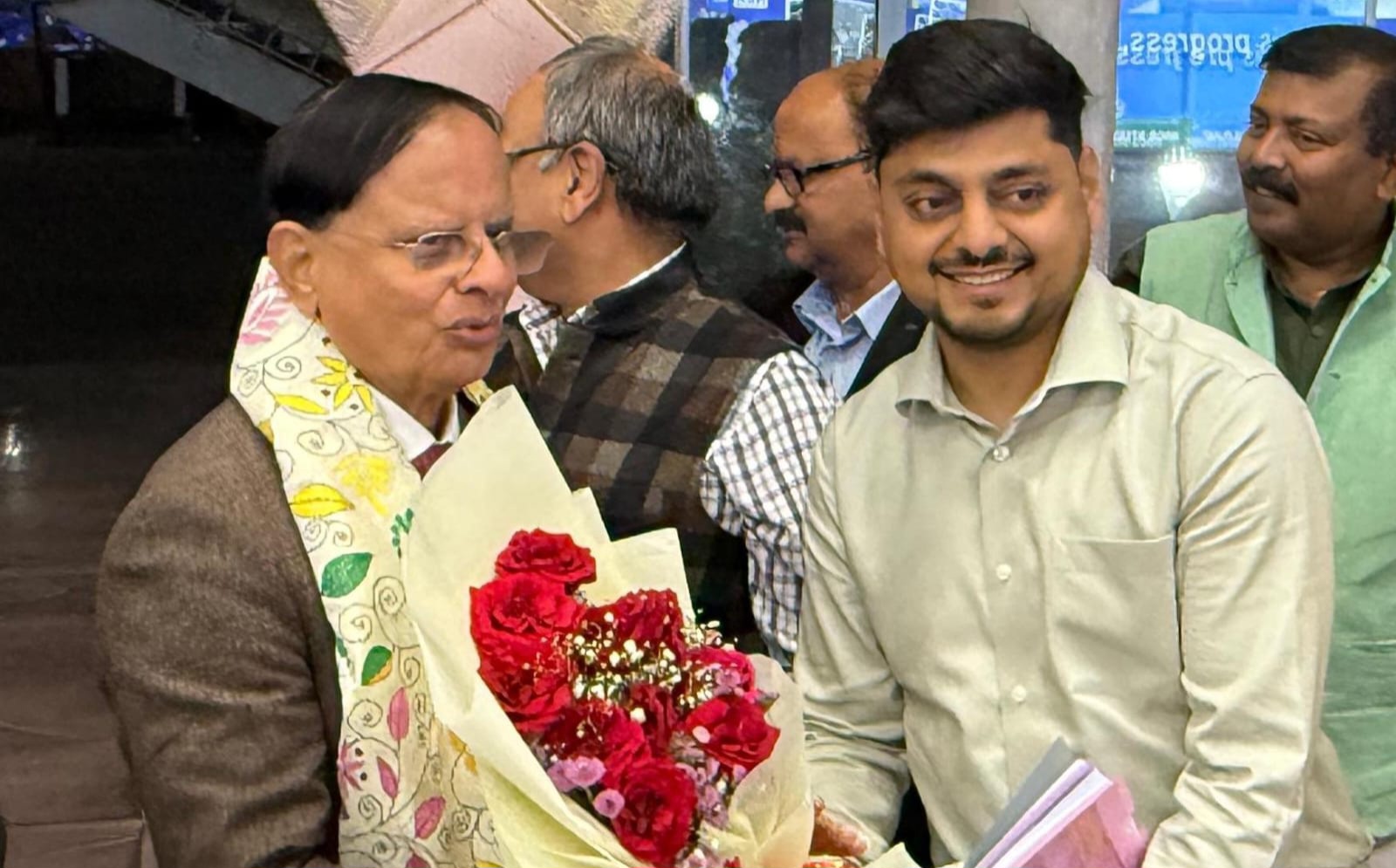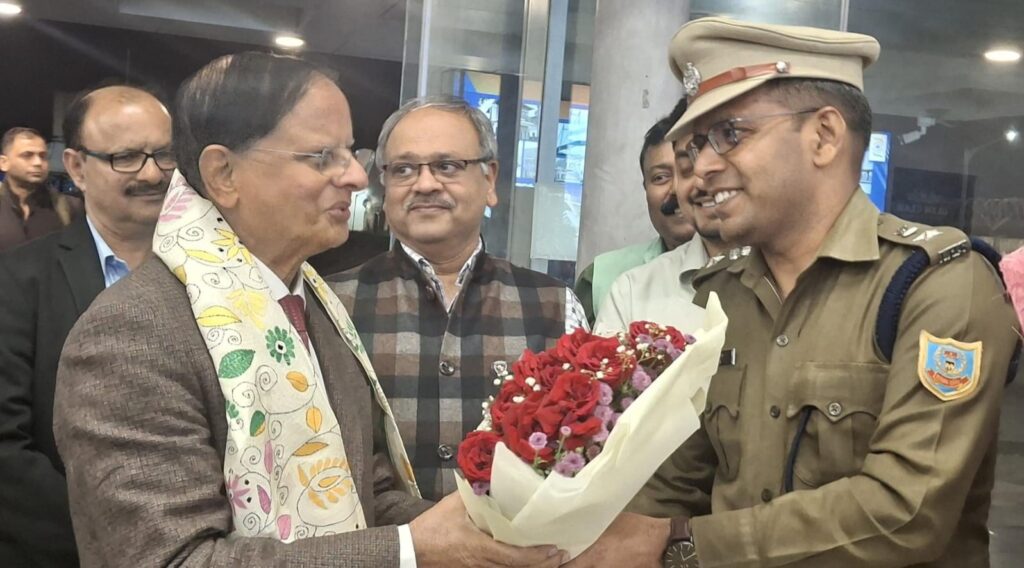 DHANBAD धनबाद : उपायुक्त आदित्य रंजन और एसएसपी ने आज दुर्गापुर एयरपोर्ट पर प्रधानमंत्री के प्रधान सचिव सह राज्य के अतिथि डॉ प्रमोद कुमार मिश्रा का पुष्पगुच्छ भेंट कर गर्मजोशी से स्वागत किया।